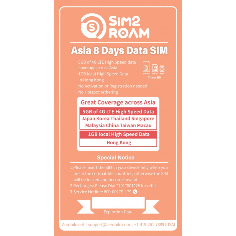 detailed information for Asia Prepaid Data Sim Card 8 Days China Malaysia Japan Korea Thailand Hong Kong Macao Taiwan Singapore Data Sim you can search here https://www.aerobile.net/store/HKHPYCA6HP